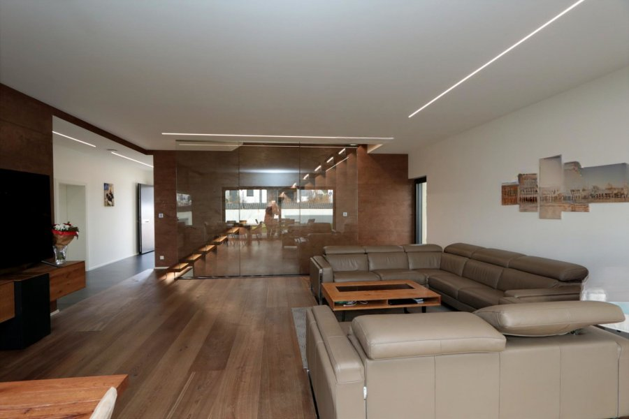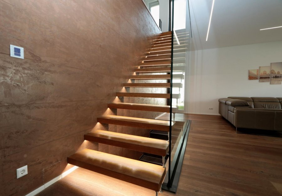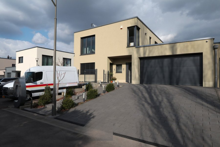 Дом расположен в спокойном жилом районе Штайнфорта. Построенный в 2020 году, он предлагает просторные помещения и высококачественные удобства. Участок площадью около 5.15 ары, общая поверхность более 449 м² распределяется на три уровня.