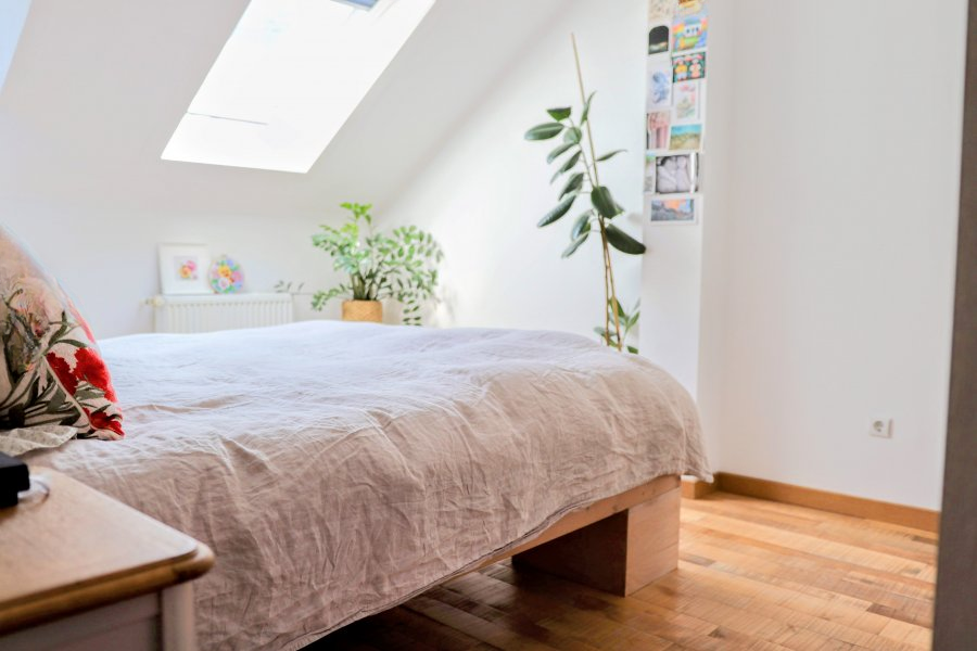 На третьем этаже светлая гостиная с открытой кухней (около 26 м²), оснащенной и встроенной на заказ кухней. На четвертом этаже находится ночной холл, две спальни и душ. В мансарде устроен офис, идеальный для удаленной работы или многофункционального использования. На первом этаже имеется крытое парковочное место, частный погреб и просторная терраса примерно 20 м². Жилая площадь составляет около 64,40 м².