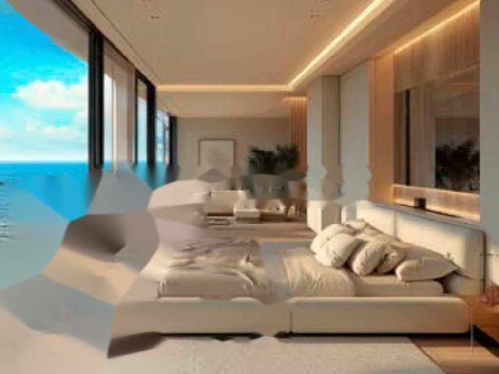 Квартира находится в престижном здании Le Renzo и обладает тройной экспозицией, что наполняет пространство естественным светом и открывает панорамные виды на море.