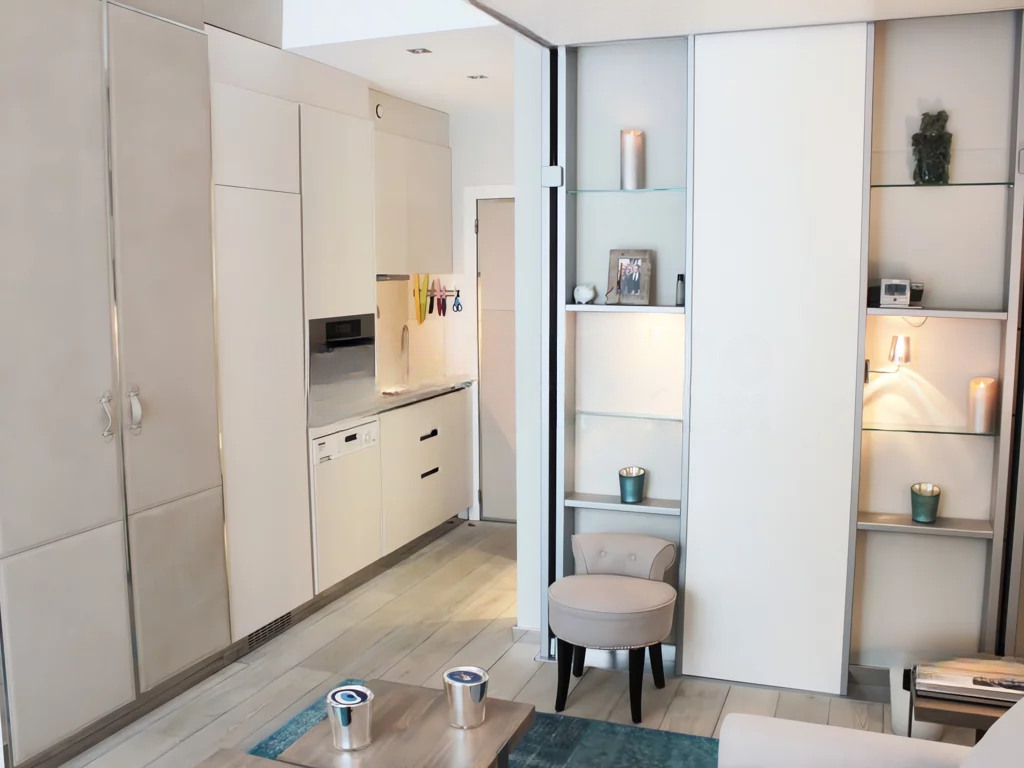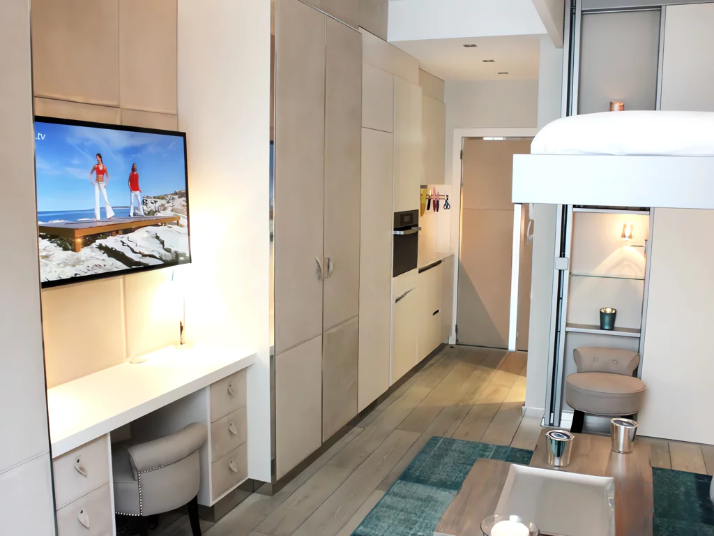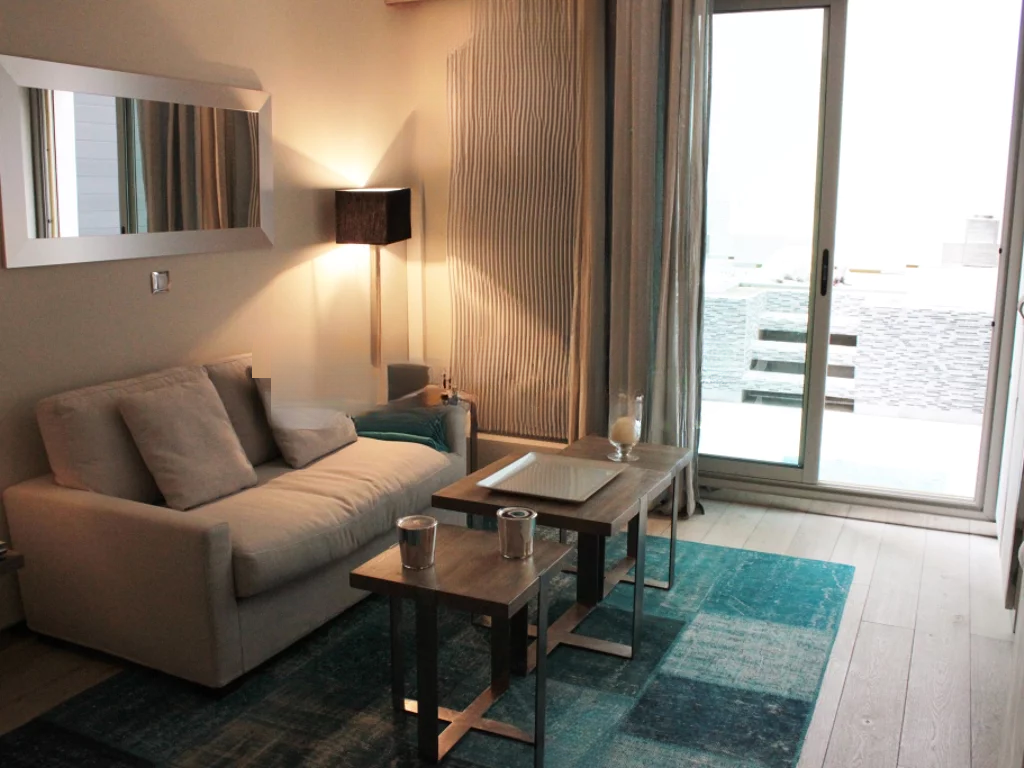 Эта великолепная квартира площадью 20 м², созданная на заказ, располагает обширной террасой такого же размера и оформлена в стиле гостиничного номера. Она идеально сочетает в себе комфорт и практичность благодаря выгодному расположению в спокойном жилом районе Jardin Exotique.