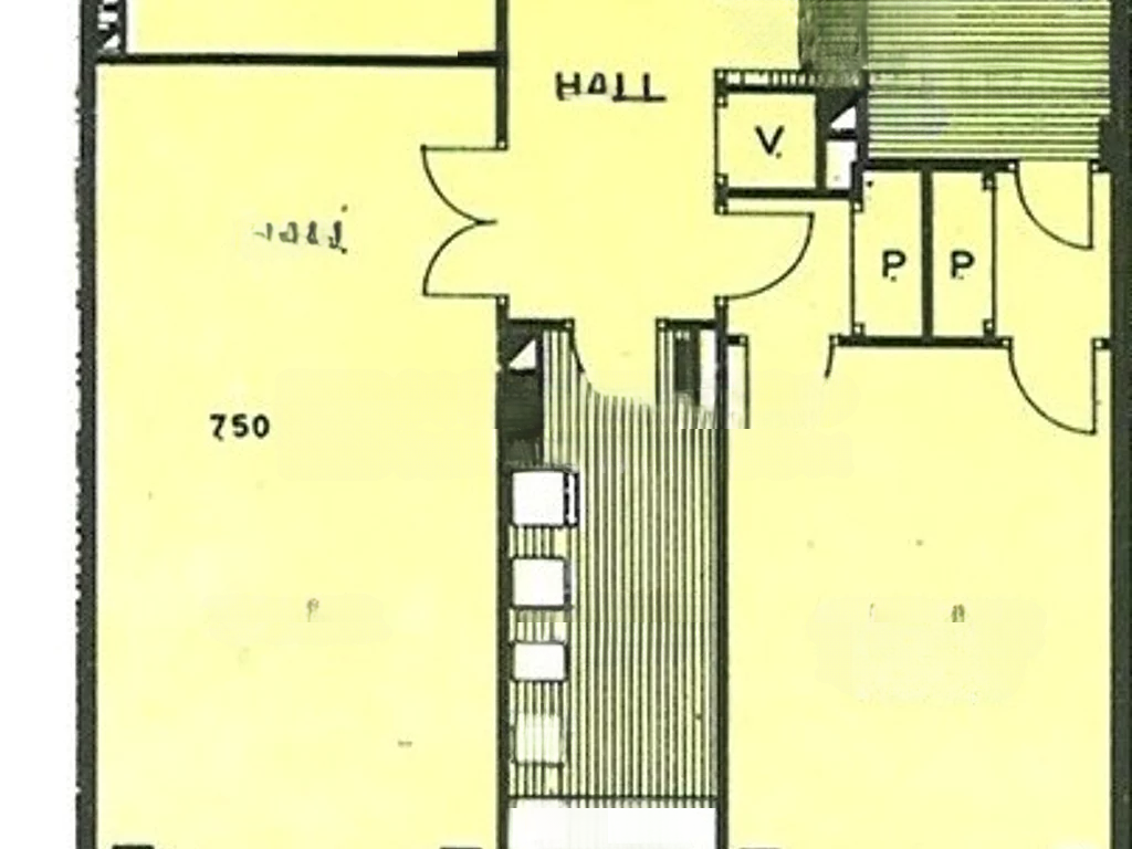 Находясь на уровне земли, это трехкомнатное жилье в 97 м² включает в себя коридор, соединяющий гостиную с видом на фасад здания, две спальни с видом во двор, кухню, душевую и туалет. Отдельная комната около 10 м² по другую сторону коридора может стать третьей спальней или кабинетом, а также доступна большая погреба на цокольном этаже.