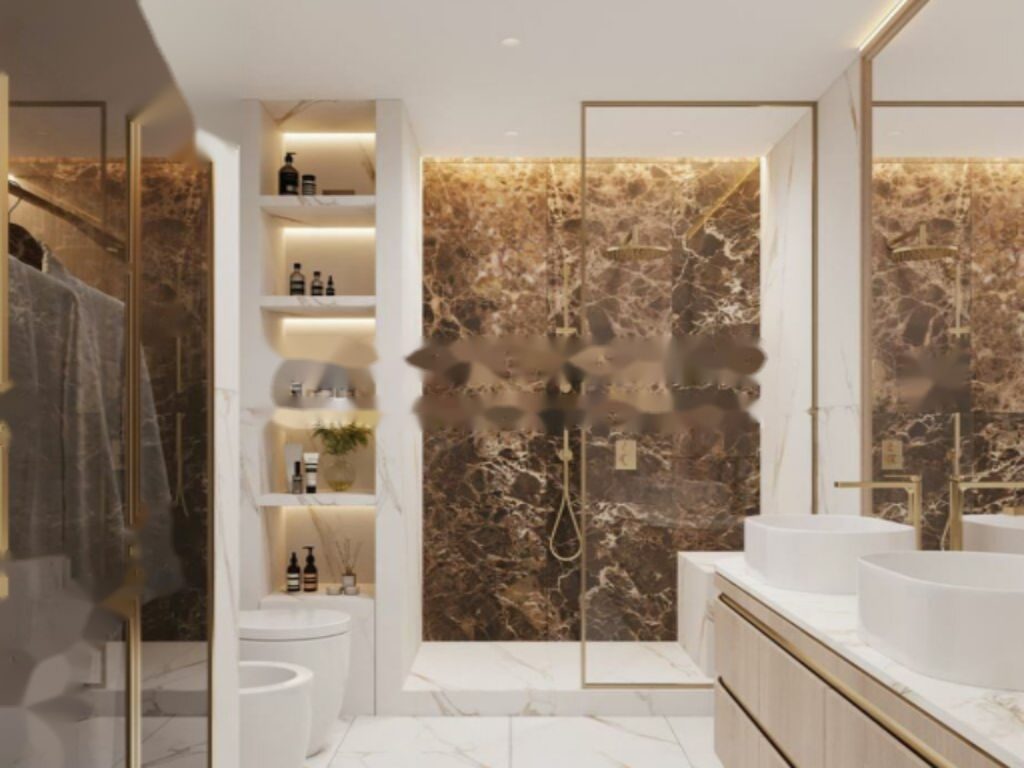 Квартира включает в себя холл с коридором, просторную гостиную с выходом на балкон с видом на море и Казино, отдельную оборудованную кухню, три спальни с выходом на балконы, каждая с отдельной ванной комнатой и гардеробной, а также гостевой туалет.