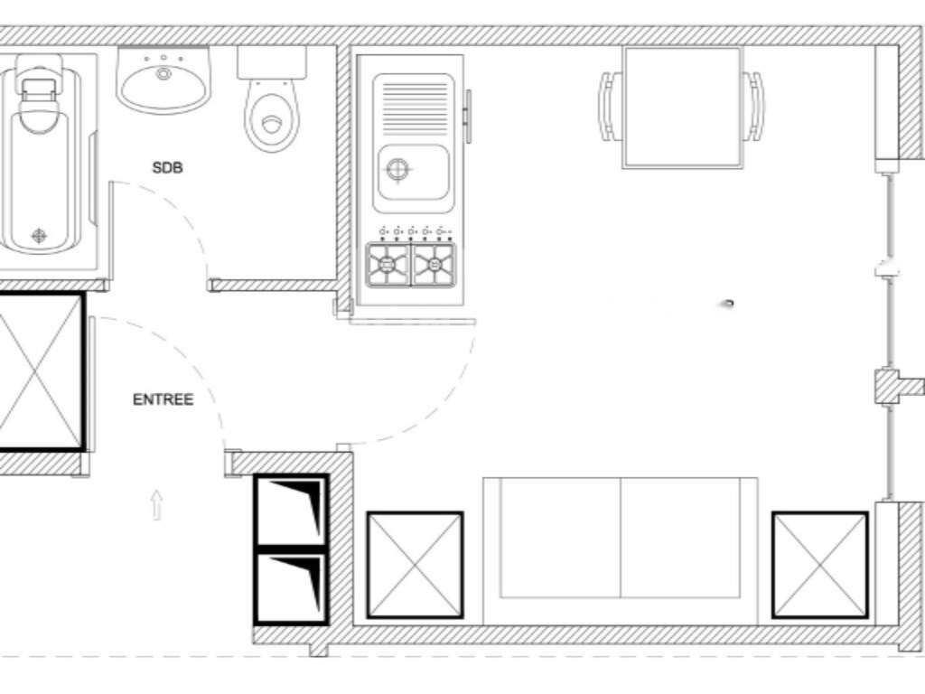 Эта квартира общей площадью 25 м² состоит из прихожей, главной комнаты с открытым видом и душевой комнаты с туалетом. Она может использоваться как квартира, так и офис.