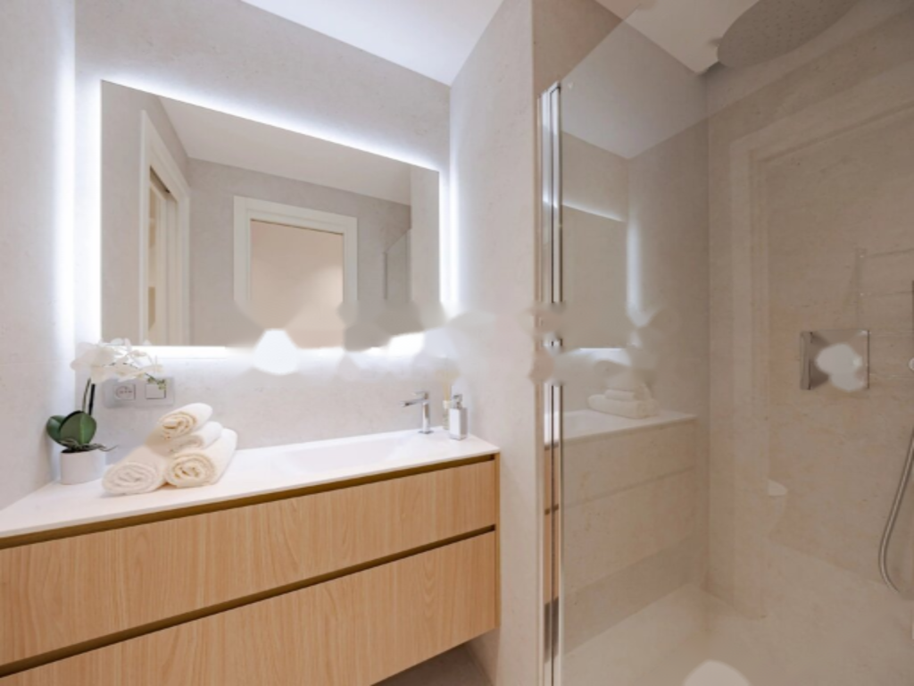 Он предлагает просторный вход, гостиную зону с открытой полностью оборудованной кухней, выходящей на большую террасу с западной экспозицией. Апартамент включает в себя две оборудованные спальни и современную ванную комнату.