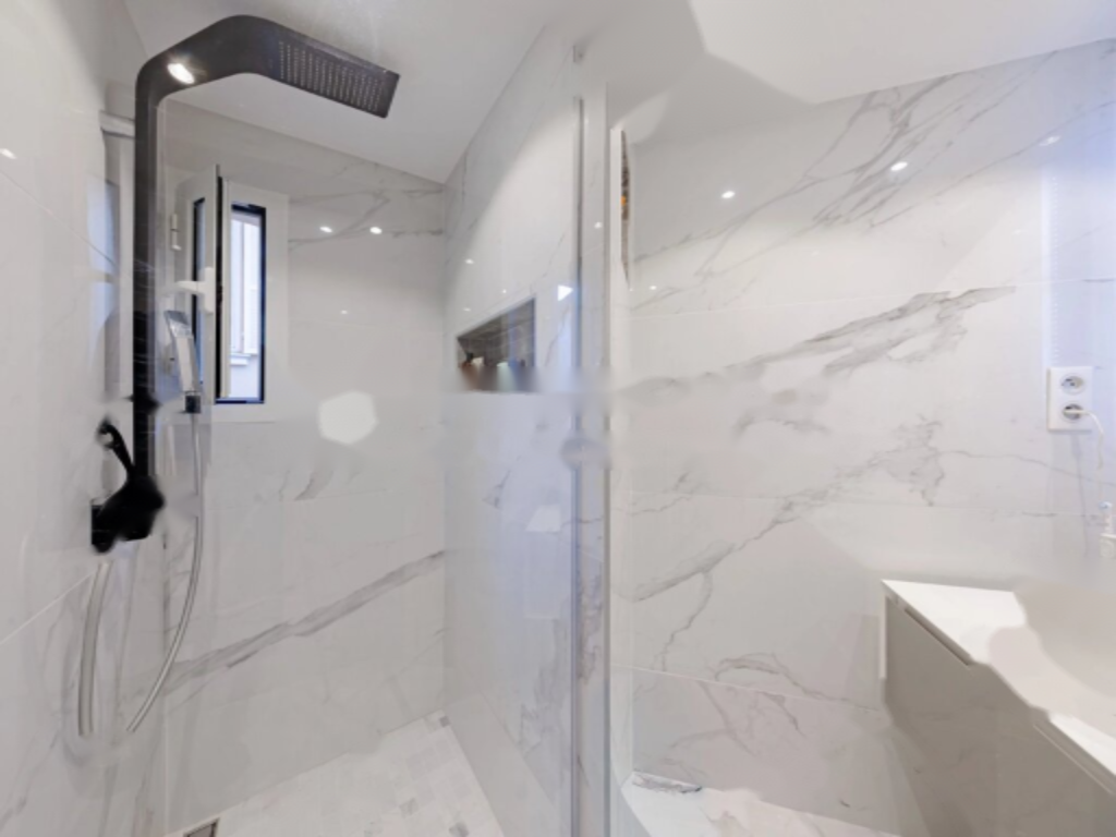Здание расположено в стороне от дороги, что делает его довольно тихим. Идеально для пары, которая хочет обосноваться в Монако, так как здание имеет очень низкие расходы по содержанию недвижимого имущества. Эта квартира площадью 56 м² находится на третьем и последнем этаже, но в доме нет лифта. Внутри: прихожая, жилая комната с открытой кухней с видом на зелень, большая спальня и душевая комната .