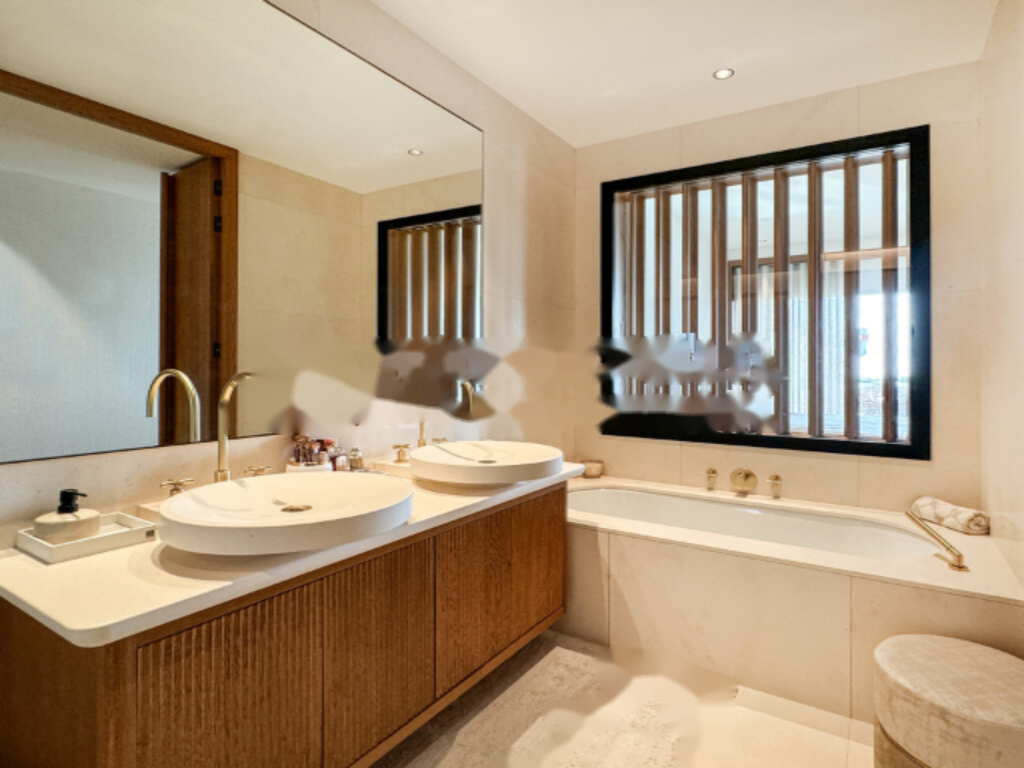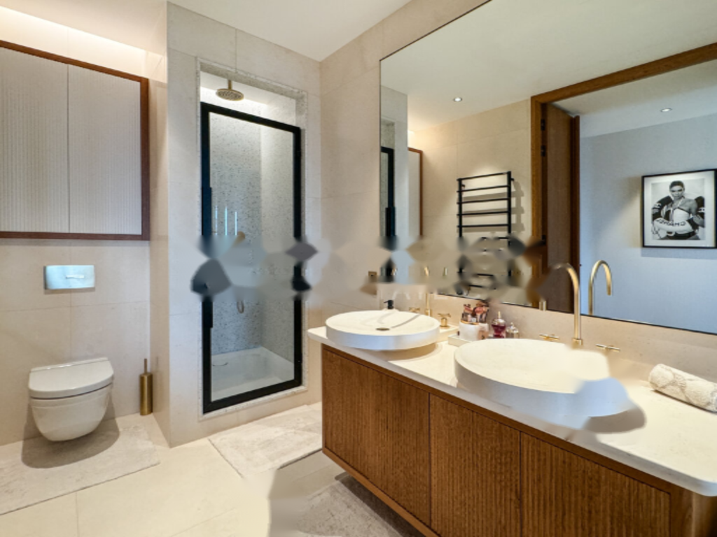 Основная спальня восхищает своими размерами, естественным освещением и гардеробной с обилием мест для хранения. Ванная комната с подогревом пола включает в себя плиточную отделку, двойную раковину по индивидуальному заказу, ванну и душ. Вторая спальня с душевой также впечатляет своим качественным дизайном и материалами. Квартира дополнена полностью оборудованной прачечной и гостевым санузлом.
