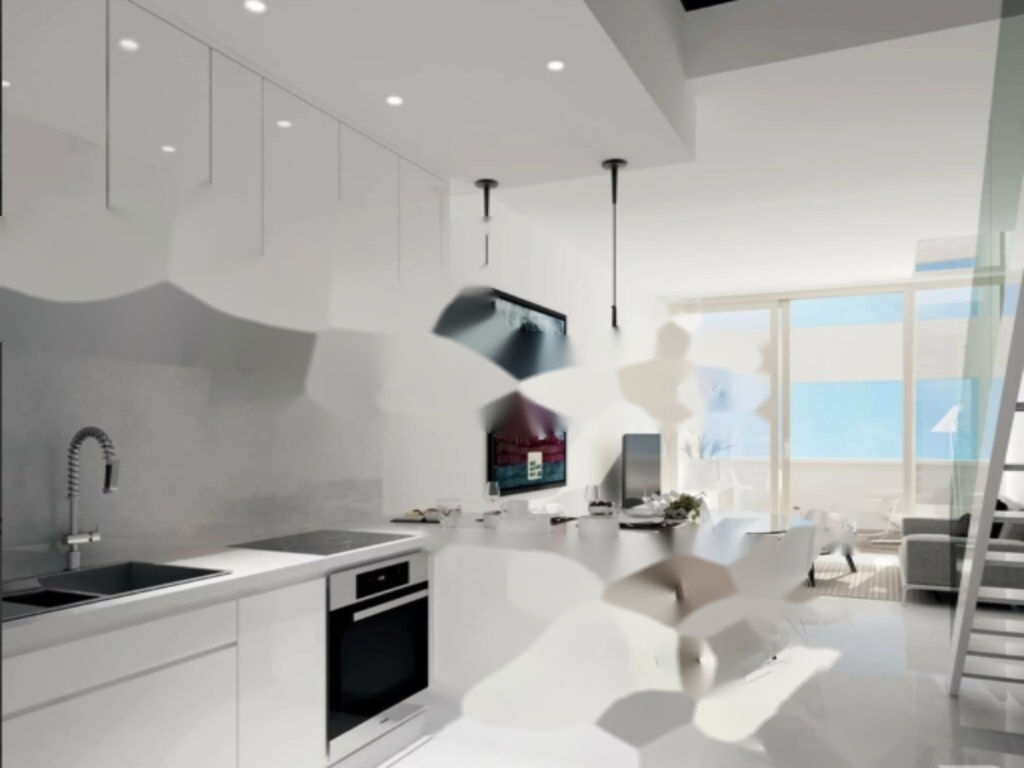 В состав квартиры входят: прихожая, гостиная с открытой, полностью оборудованной и меблированной кухней, терраса, спальня, ванная комната с туалетом и гостевой туалет. Квартира также включает место для парковки в здании.