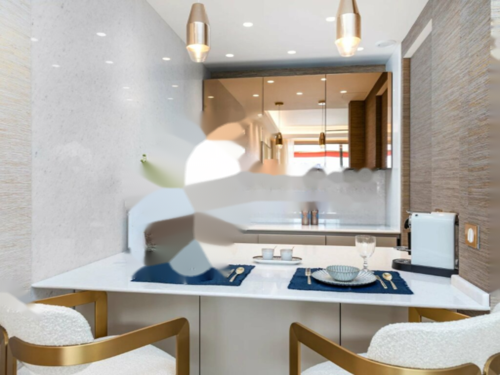 Роскошные апартаменты с двумя комнатами полностью отремонтированы с использованием благородных материалов и изысканного декора. Просторная и светлая гостиная обставлена с особым вниманием к деталям. Мраморный пол придает квартире особый шарм. Открытая кухня полностью оснащена и украшена мраморной столешницей и обеденным столом с золотыми акцентами. ️