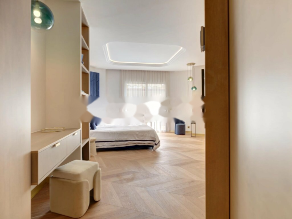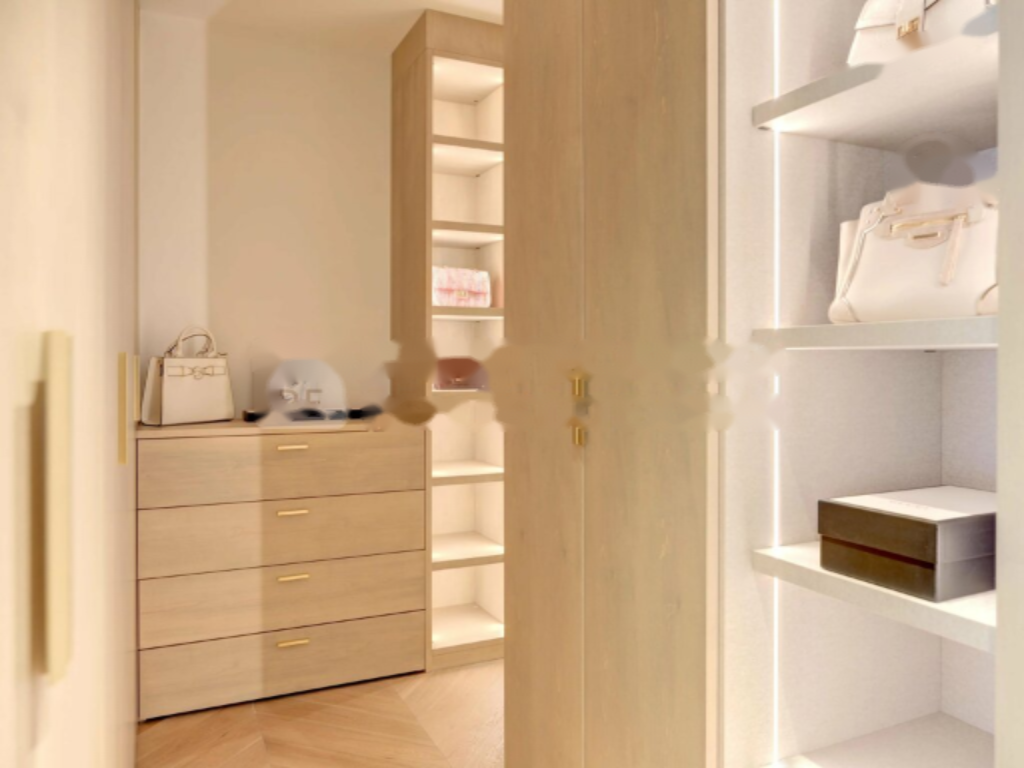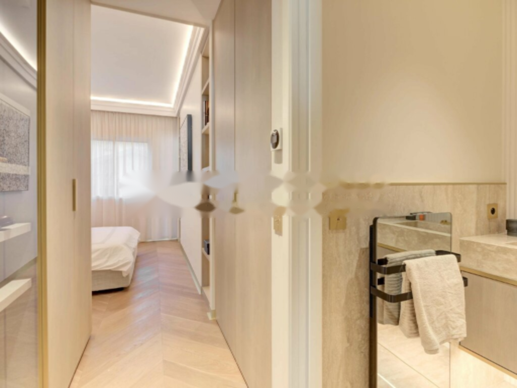 Апартамент включает мастер-спальню с ванной комнатой и большим гардеробом, а также две другие спальни, каждая из которых также имеет собственную ванную и гардеробную.
