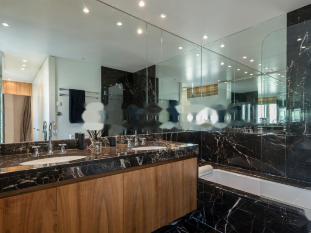 На первом этаже пентхауса находится просторная гостиная, где объединены зоны отдыха и обеденная зона. Полностью оборудованная кухня и две спальни, одна из которых мастер-спальня с большой роскошной ванной комнатой. Также здесь есть кабинет или гардеробная и прачечная.