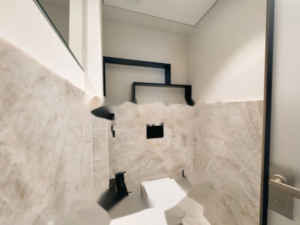 Апартамент включает в себя: прихожую, гостевой туалет, гостиную с террасой, кухню, ванную комнату, спальню с рабочим уголком и спальню с террасой.