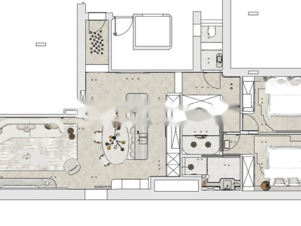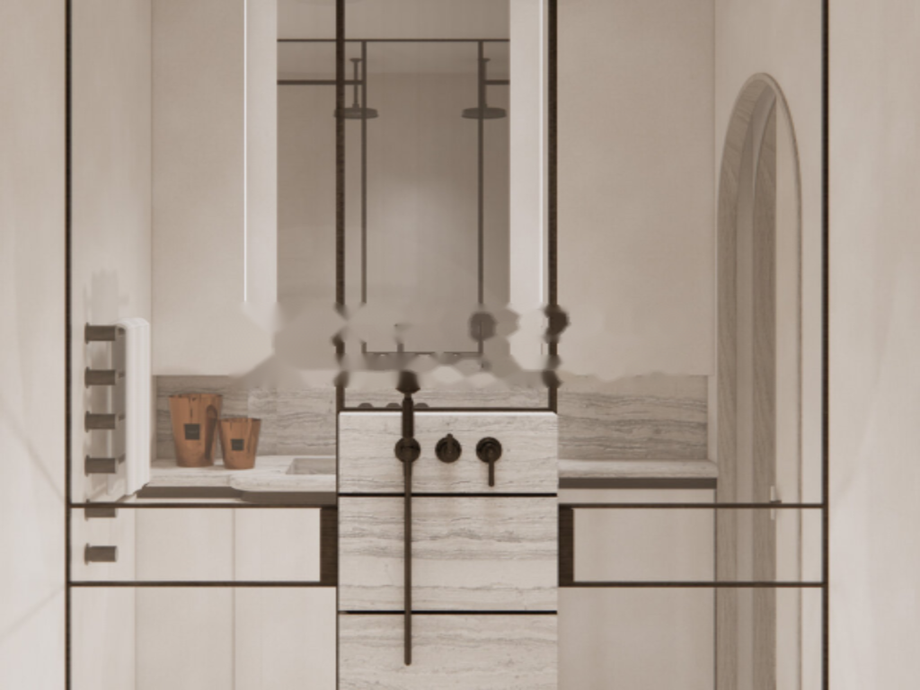 Апартаменты включают в себя прихожую, гостиную с полностью оборудованной кухней и центральным островом, две спальни, в каждой из которых есть собственная ванная комната и шкафы, а также гостевой туалет и балкон. ️