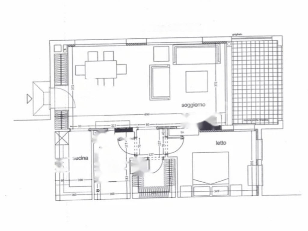 Квартира включает в себя: гостиную, оборудованную кухню, спальню, полную ванную комнату, гардеробную, два шкафа и террасу. К квартире также прилагается погреб.