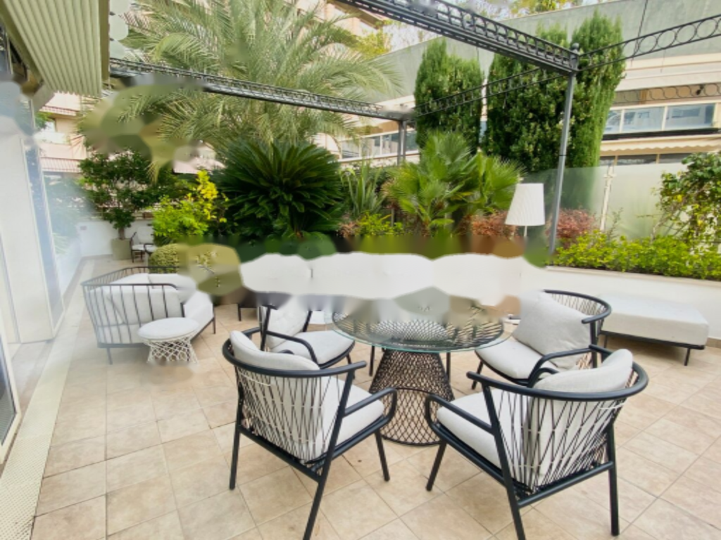 Эти великолепно отремонтированные апартаменты с уникальной террасой-садом предлагают изысканную мебель и полное оснащение, готовые для немедленного заселения. Жилые зоны включают гостиную с газовым камином и красиво обставленную столовую, которая ведет на большую частную террасу с перголой и садом. Кухня отделена и имеет прямой доступ на террасу, в столовую и отдельный вход для персонала и поставок. Приборы - самые современные.