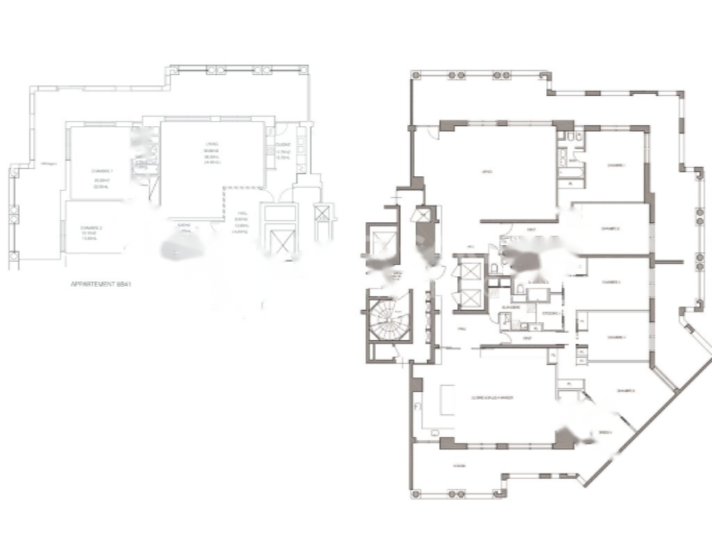 Первый апартамент включает пять спален, четыре ванных комнаты, два просторных салона, столовую и оборудованную кухню с большими террасами. Второй апартамент с двумя спальнями и двумя ванными комнатами также впечатляет просторной гостиной и кухней.
