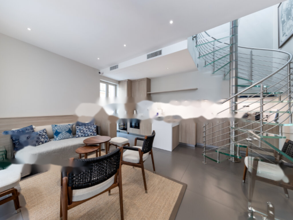 Спиральная лестница из нержавеющей стали и стекла, специально разработанная для этого объекта, обеспечивает проникновение естественного света сверху вниз. Большая терраса на крыше, редкость для Монако, делает этот пентхаус идеальным местом для отдыха и развлечений на свежем воздухе.