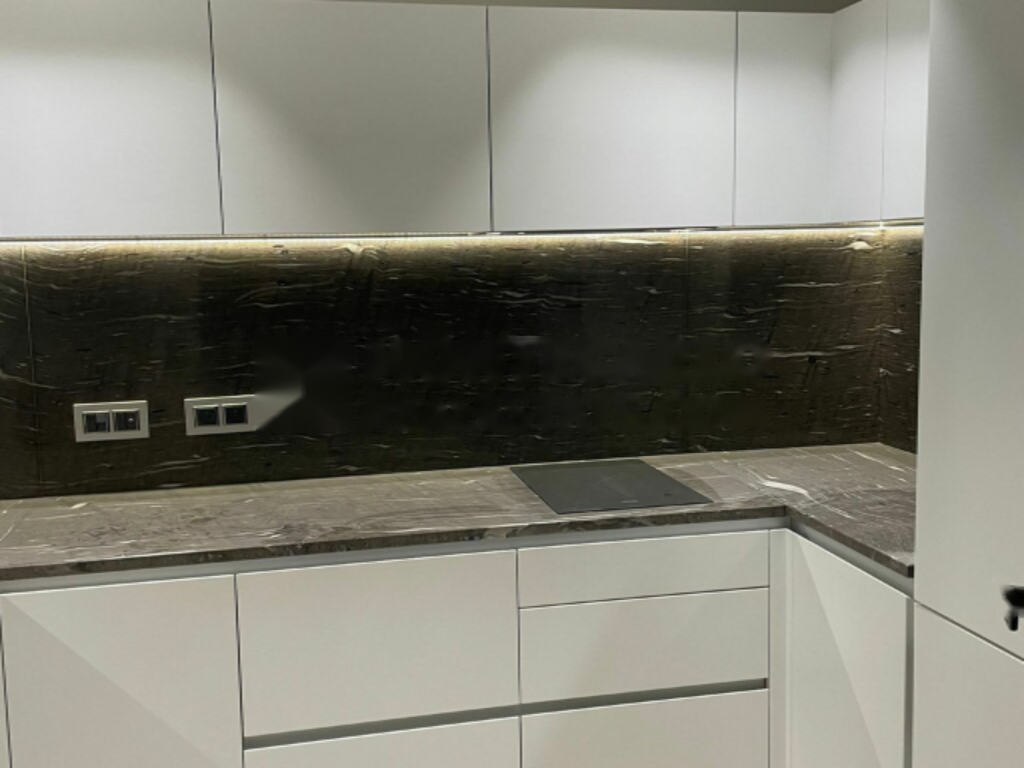 Апартамент включает в себя зону прихожей с массивными деревянными шкафами, полностью оборудованную отдельную кухню марки Bulthaup, гостиную с итальянским мрамором, а также внутренний дворик.