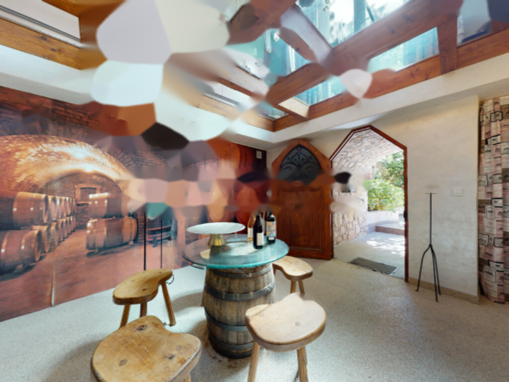 На первом этаже расположен просторный холл, открывающийся в гостиную, кухню и столовую с выходом на террасу, гардеробную, библиотеку и гостевой туалет. На втором этаже (доступ через лифт или лестницу) находятся четыре спальни, три из которых имеют смежные ванные комнаты, душевая комната, гардеробная и выход на террасу на крыше. На цокольном этаже находится винный погреб, примыкающий к столовой.