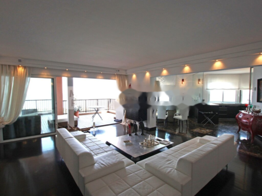Редкое предложение с 4/5 комнатами в престижном здании с бассейном и парком. Это великолепная квартира в высотном здании обладает панорамным видом на море и полностью обновлена. Жилое пространство включает в себя: просторный холл, двойную гостиную, выходящую на террасу с видом на море, полностью оборудованную кухню с панорамным видом, хозяйскую спальню с ванной комнатой и гардеробной, две гостевые спальни и две ванные комнаты, кабинет и прачечную.