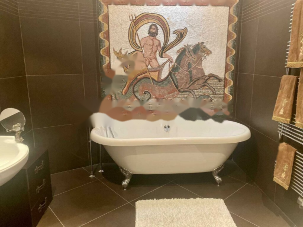 На обширной террасе есть бассейн, окруженный прекрасным ухоженным садом . В подвале предусмотрен большой гараж на несколько автомобилей и потрясающий винный погреб . Имеется возможность расширения на 53 м².