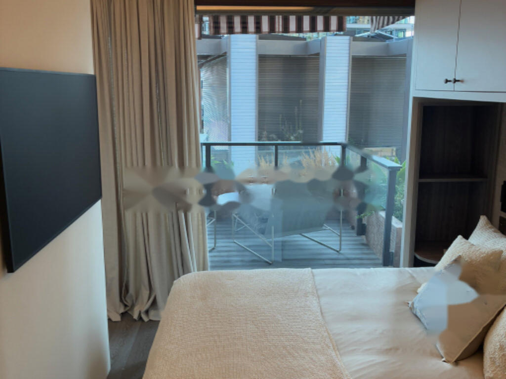 Апартаменты предлагают вид на море и состоят из прихожей, гостевого туалета, оборудованной кухни, гостиной с обеденной зоной, спального угла, душевой и террасы площадью 18 м².
