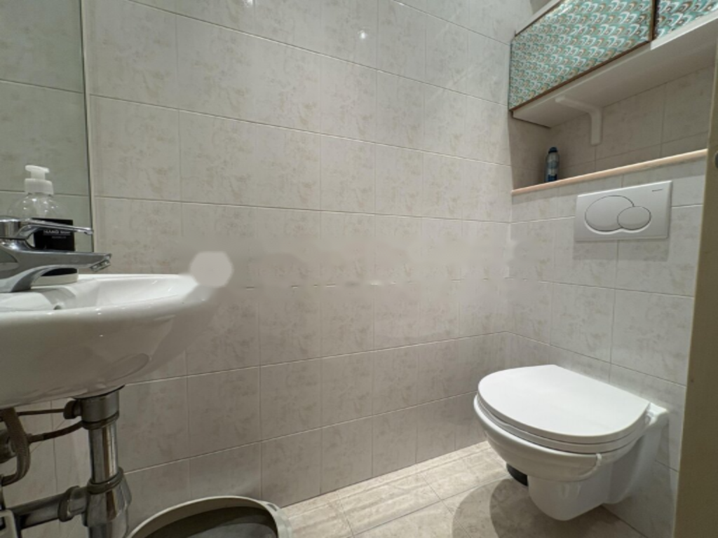 Квартира имеет светлый коридор при входе, кухня оформлена как открытое пространство с выходом в зону отдыха, которая ведет к балкону. Спальня оснащена большим встроенным шкафом. Ванная комната и отдельный гостевой туалет добавляют удобства.