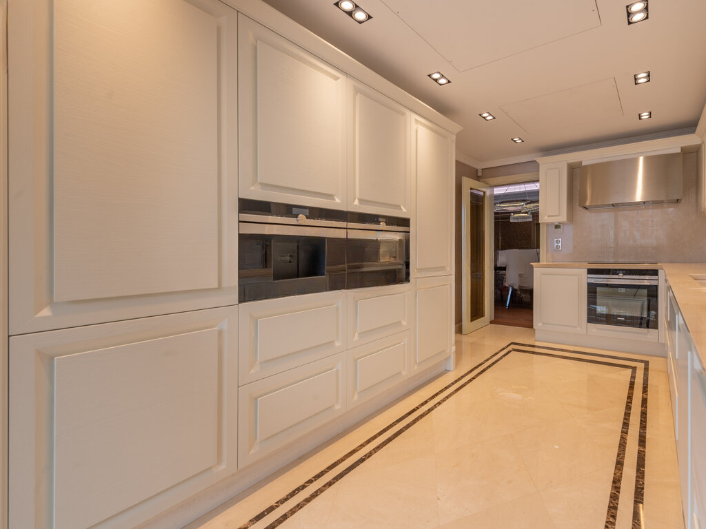 В состав входит две мастер-сьюты с ванными комнатами и гардеробными, четыре спальни с ванными комнатами, два кабинета, две гостиные, столовая, две кухонных зоны, прачечная и уникальный кинотеатр.