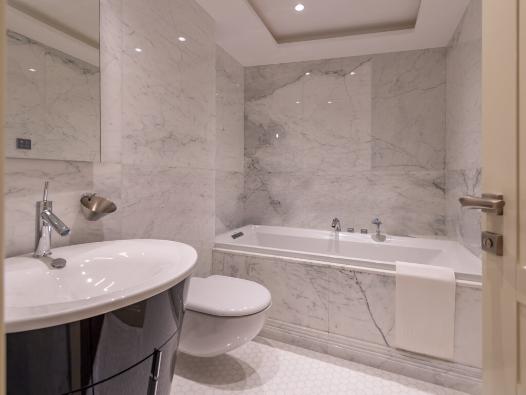 Эта квартира на целый этаж с потрясающим видом на трассу Гран-при Формулы-1 была полностью обновлена и декорирована с использованием роскошных материалов и мебели.