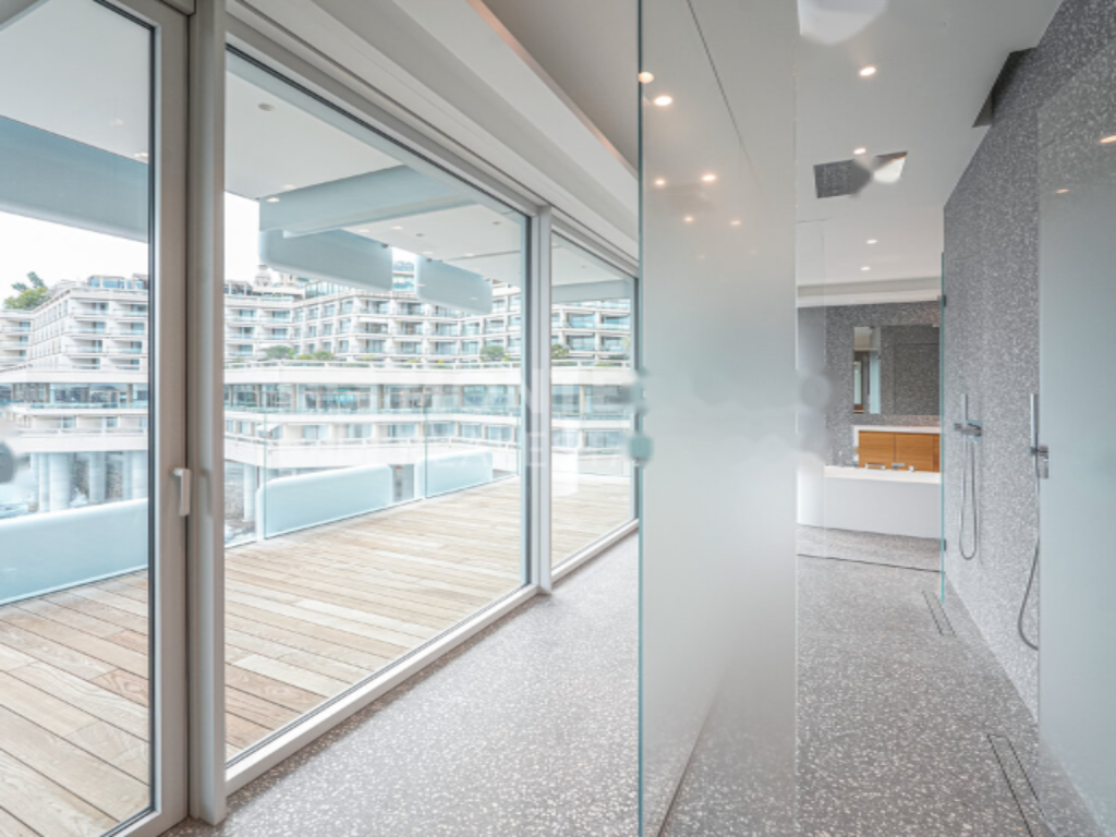Апартамент поражает своими просторными объемами и утонченностью. Внутреннее пространство 528 м² дополнено террасами площадью 151 м² с потрясающими видами на море и порт Монако. Пространство предлагает вход, просторную гостиную с выходом на большую террасу с видом на море, мастер-спальню с двумя гардеробными и роскошной ванной комнатой с двойным душем и двумя раковинами, а также отдельным туалетом, выходящую на широкую террасу. Две другие спальни, каждая с ванной комнатой, гардеробной и отдельной террасой, дополняют спальную зону.