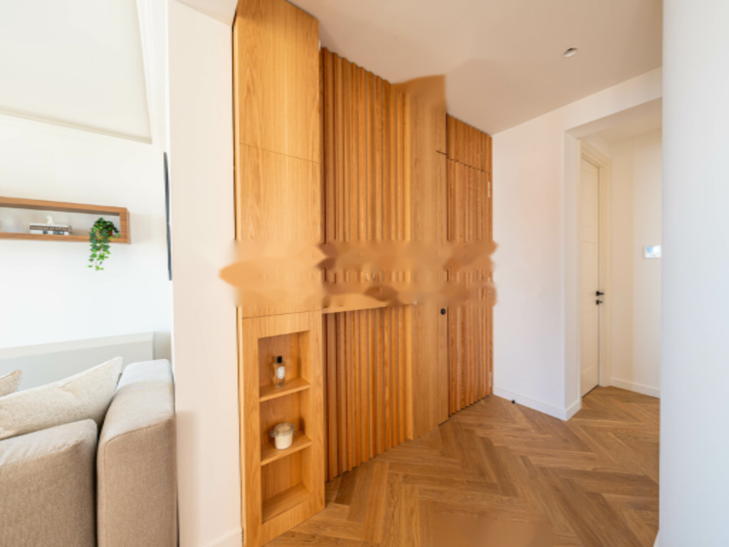 Расположенный на третьем этаже, апартамент включает вход, светлую гостиную с открытой кухней, две просторные спальни с местами для хранения и две душевые комнаты, а также гостевой туалет.