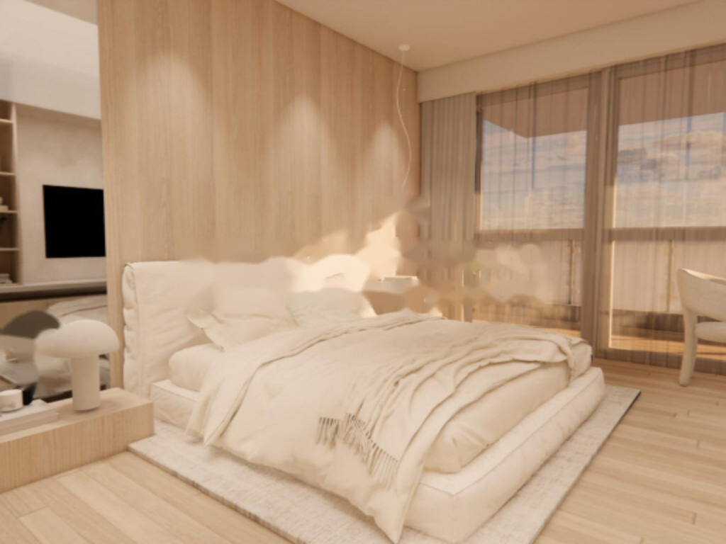 Общая площадь составляет 96.5 м² и включает в себя прихожую, гостиную с открытой кухней, две спальни и две ванных комнаты. Гостиная и спальни открываются на террасу с потрясающим видом на море.