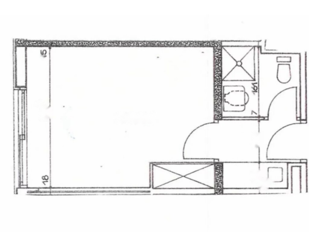 Находится на 9-м этаже, площадью 25 м², состоит из одной главной комнаты, кухни-ниши, а также душевой и туалета.