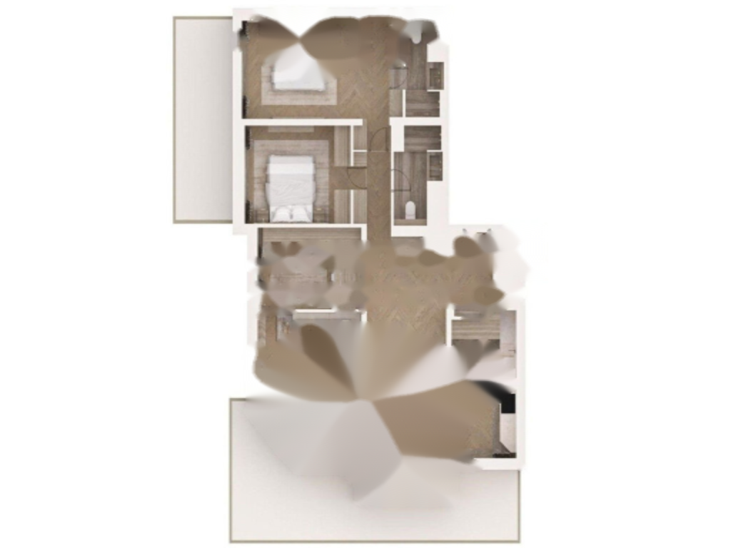 В квартире две спальни, каждая с собственной ванной комнатой, кабинет, который может быть переоборудован в спальню, и отдельная кухня с полным оснащением. Просторный салон совмещен с обеденной зоной и имеется гостевой туалет. Включено одно парковочное место.