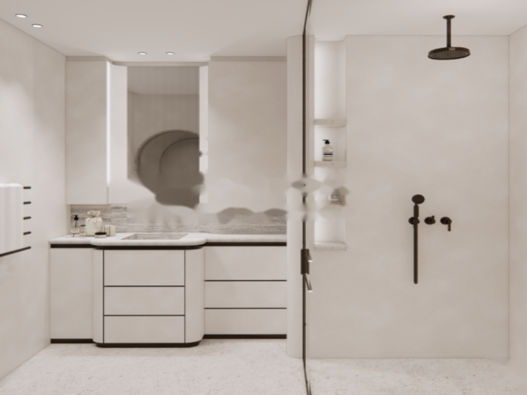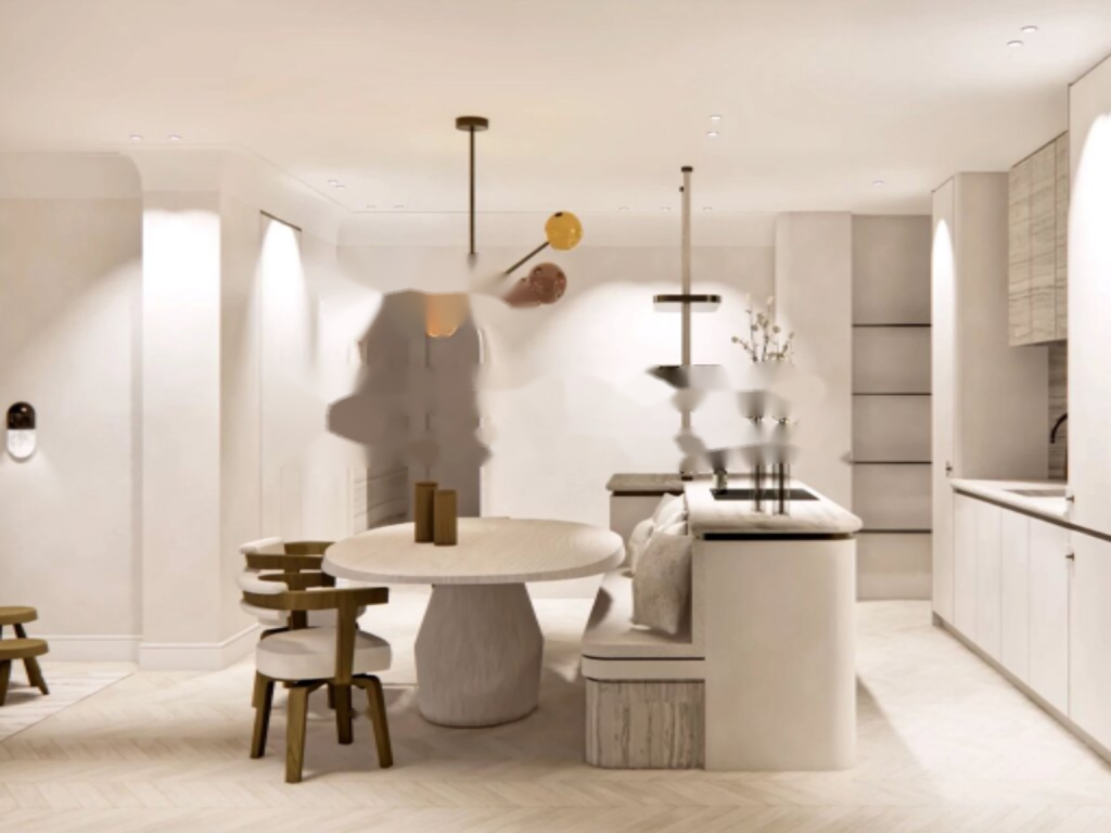 Квартира включает вход, холл, большую гостиную с открытой кухней, лаунж-зону, две спальни, ванную комнату и душевую. В здании есть лифт и услуги консьержа. Ожидаемая дата завершения ремонта — четвертый квартал 2025 года.