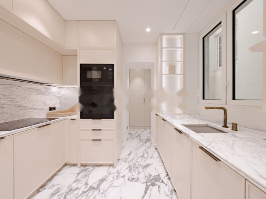 В квартире две спальни, каждая из которых имеет собственную душевую комнату, а также отдельный гостевой туалет. ️ Просторная кухня полностью оборудована и обустроена, дополняя общую атмосферу квартиры. Гостиная и столовая освещены балконом, выходящим на Carré d'Or и с видом на море.
