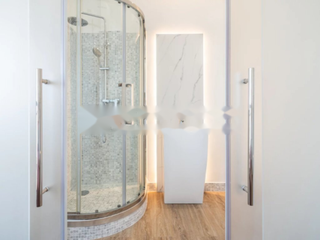 Она состоит из гостиной с оборудованной кухней, две спальни каждая со своей душевой комнатой, гостевой туалет и многочисленные места для хранения.