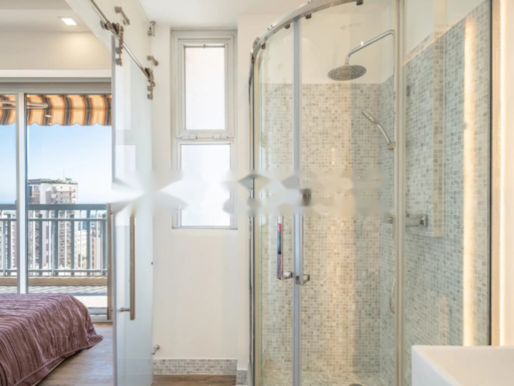 Светлая трехкомнатная квартира на 8 этаже полностью отремонтирована и меблирована, с жилой площадью 95 м² и террасами площадью 23 м², предлагающая вид на море и город. ️