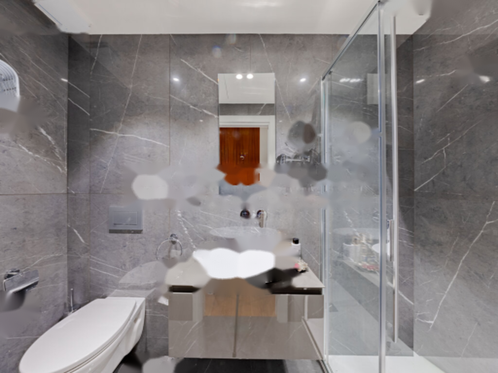 Апартамент начинается с входа, который ведет слева в элегантную душевую комнату с туалетом, раковиной и современной душевой кабиной. Спальня с встроенным шкафом предлагает комфортное и функциональное пространство.