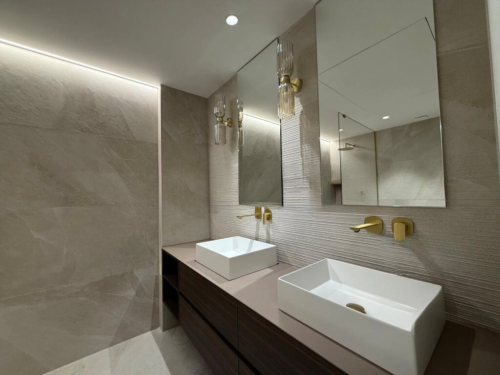 Апартамент включает в себя гостиную с открытой кухней, две спальни, две ванные комнаты и балкон. Благодаря отличному расположению, всего в нескольких шагах от порта и магазинов, жильцы могут наслаждаться удобством проживания в оживленной части города.