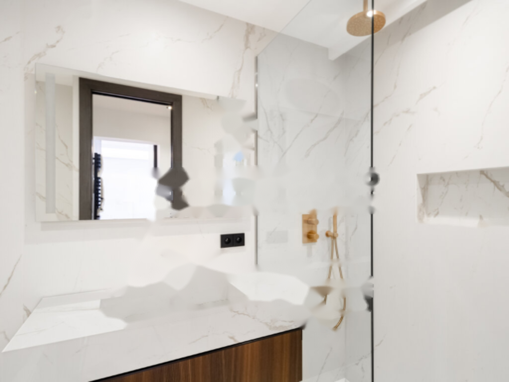 Полностью отремонтированное с использованием качественных материалов, это жилье сочетает в себе функциональность, комфорт и тщательно продуманные удобства. Квартира включает в себя входную зону, просторную гостиную с обеденной зоной и полностью оборудованной американской кухней, две спальни класса 'en suite', каждая из которых имеет свою ванную комнату (с душем и ванной), а также две отдельные туалетные комнаты. Также в планировку входят прачечная, гардеробное помещение и несколько встроенных шкафов.
