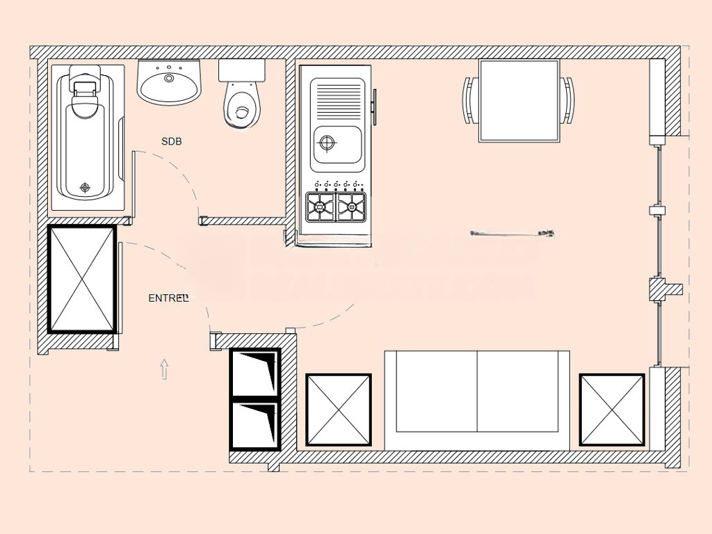 Этот гостеприимный объект состоит из прихожей, главной комнаты и оборудованной ванной комнаты. Он идеально подходит как для жилого, так и профессионального использования, обеспечивая комфорт и удобство в самом сердце города.