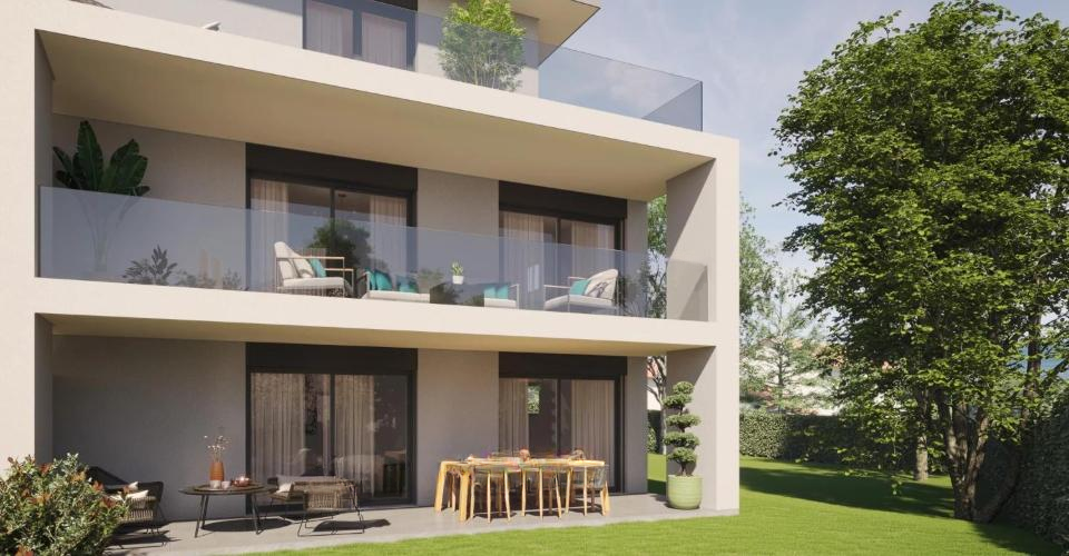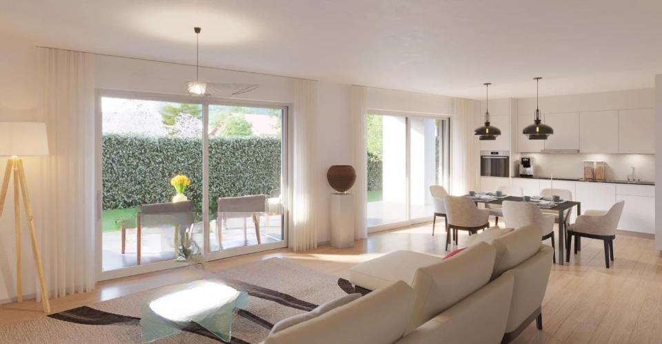 Представляем вашему вниманию очаровательную четырехкомнатную квартиру на первом этаже нового проекта Vieille-Ferme 8 THPE, расположенного в привилегированном жилом районе в сердце востребованной коммуны Veyrier.