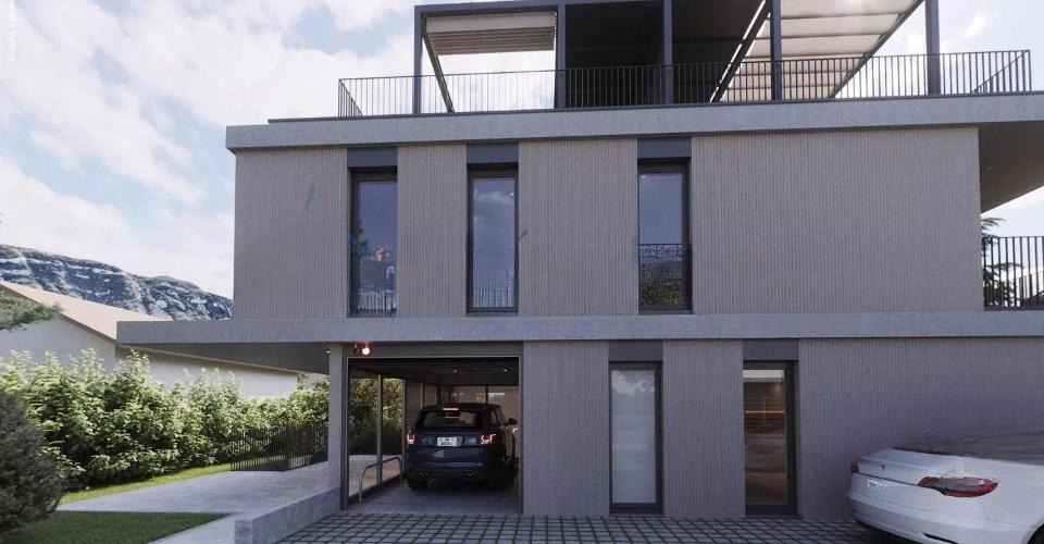 Дополнительно крыша с террасой площадью более 50 м² предлагает захватывающий вид на горы. Современная кухня с безупречной отделкой соединяется с светлой гостиной. ️