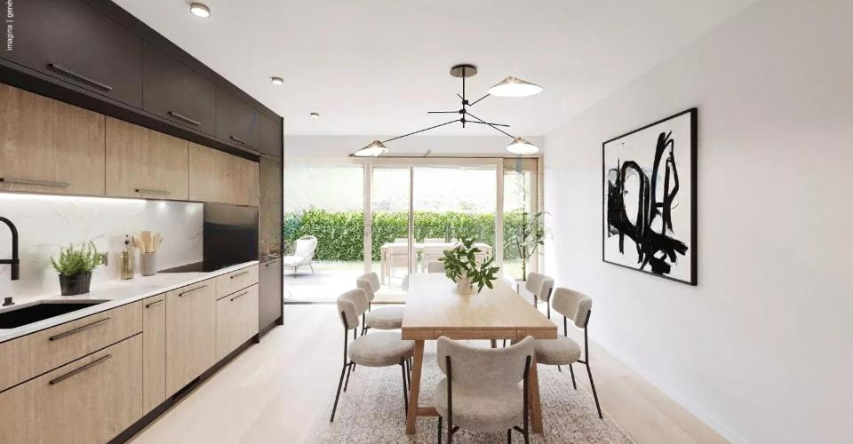 Большие окна с тройным остеклением обеспечивают превосходную звуко- и теплоизоляцию в соответствии с THPE стандартом. Частная терраса, выходящая в сад, приглашает вас к отдыху и идеально подходит для обедов на свежем воздухе.