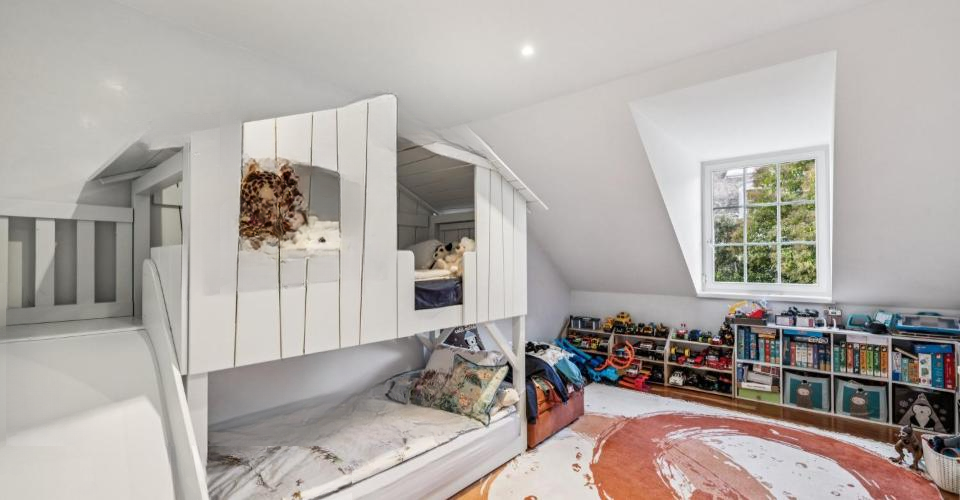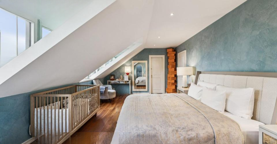 Этаж: На верхнем этаже расположены роскошный главный люкс с гардеробной и ванной/душевой комнатой. Вторая спальня также имеет собственную ванную комнату, а две другие спальни делят современную семейную ванную комнату.