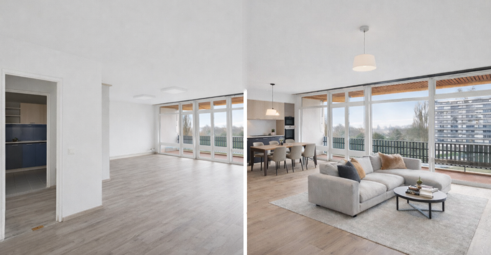 Расположенные на высоком этаже, эти апартаменты площадью 116 м² (PPE) и 125 м² (взвешенная) получают исключительное освещение в течение всего дня благодаря своей конфигурации и оптимальной ориентации.