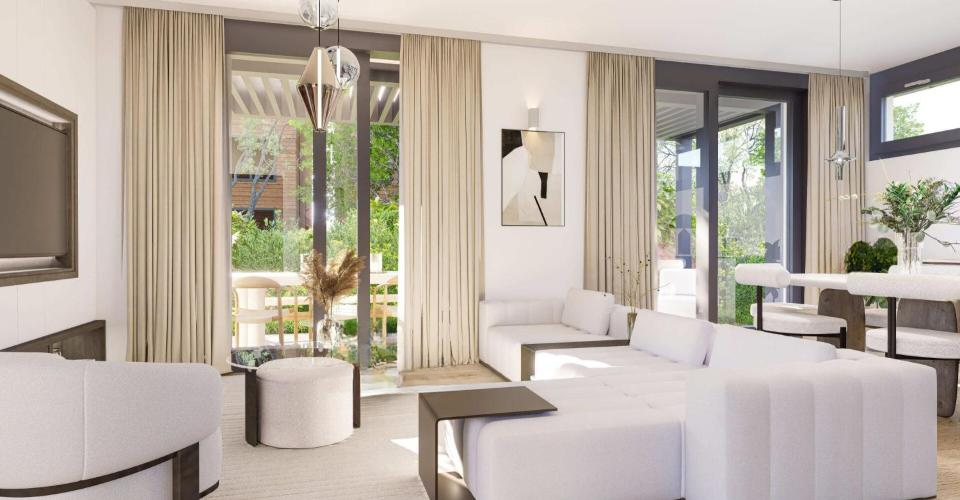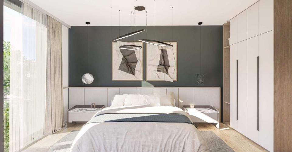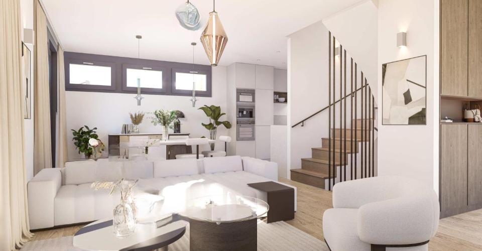 С очертательной площадью 134.90 м², Villa D предлагает 5 комнат, включая 3 спальни и 2 ванные комнаты, а также два частных парковочных места. Энергоэффективный стандарт THPE обеспечивает высокий уровень энергоэффективности. Планировка виллы продумана для комфорта: в цокольном этаже находятся игровая комната и технические помещения; на первом этаже — просторная гостиная с открытой кухней, гостевой туалет, терраса и сад; на втором этаже — 3 спальни, включая основную спальню, и 2 ванные комнаты.
