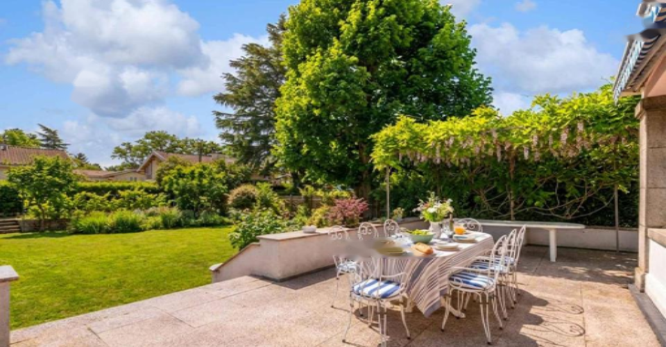 Особое внимание было уделено открытым пространствам, включая просторную террасу с видом на сад, пруд с настилом из тика (ранее бассейн), огород, садовый домик, двойной гараж и несколько парковочных мест.