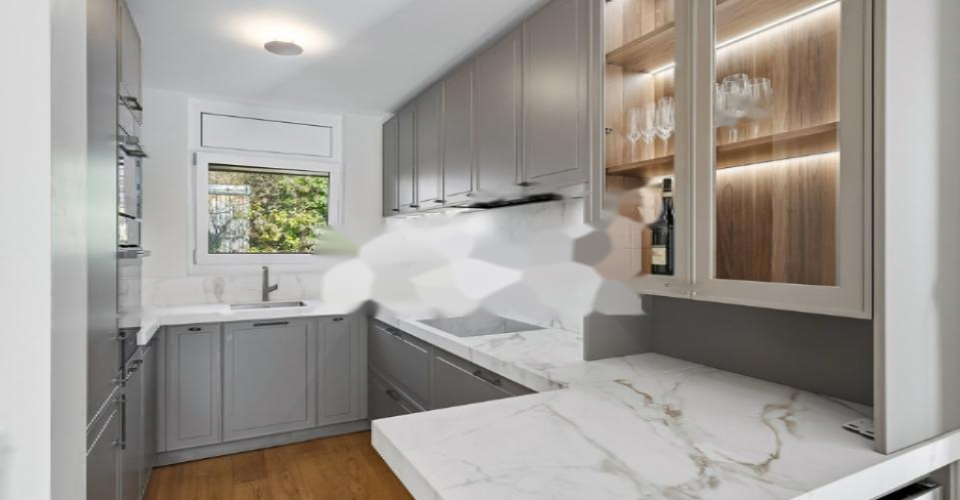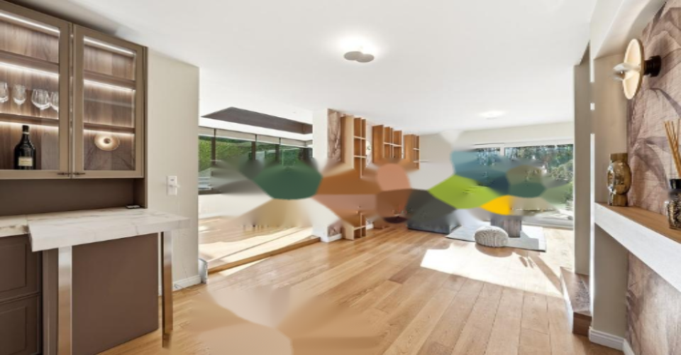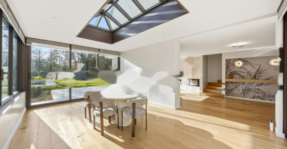 На первом этаже открывается просторная, наполненная светом гостиная с полностью оборудованной планировкой открытой кухни — настоящего сердца дома. Это жилое пространство плавно переходит на крытую террасу, в сад и к бассейну, предоставляя идеальные условия для наслаждения солнечными днями в полной приватности.