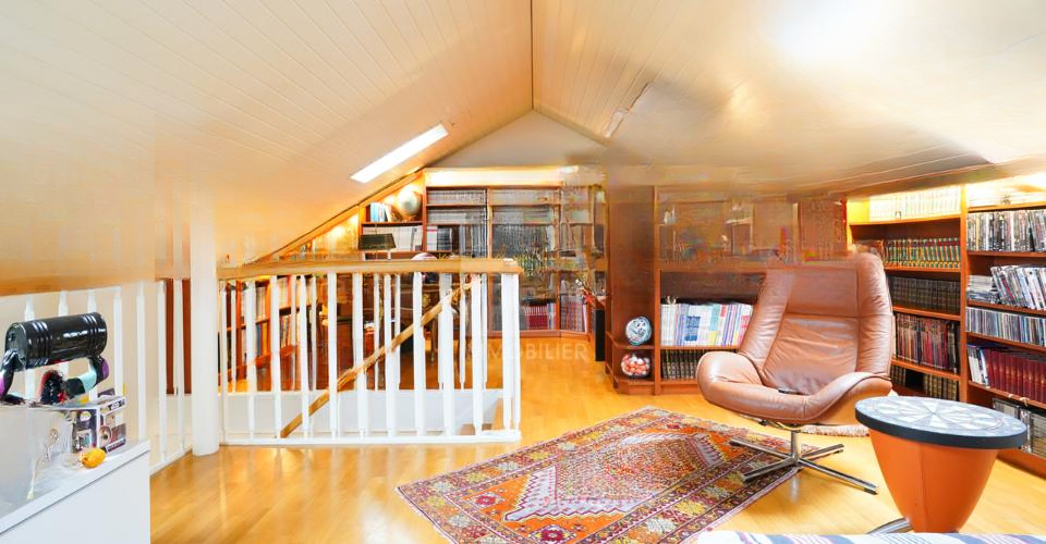 Квартира находится на втором и последнем этаже, без соседей, видящих ваш балкон, и включает: прихожую с местом для хранения, закрытую и полностью оборудованную кухню, гостиную с камином, две спальни, ванную комнату, туалет для гостей и многофункциональную мансарду. Два парковочных места и подвал дополняют это прекрасное предложение.
